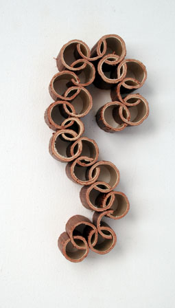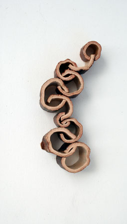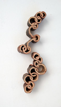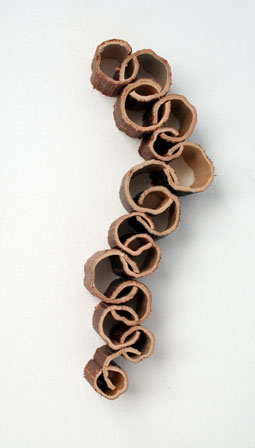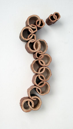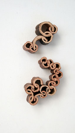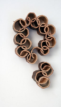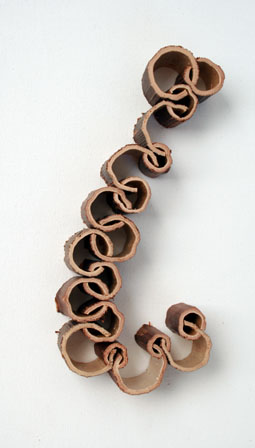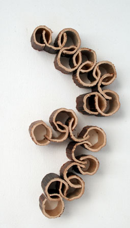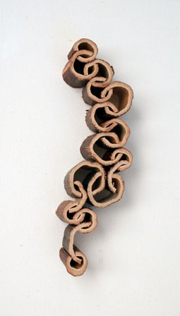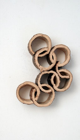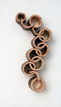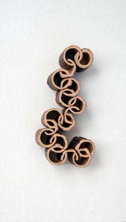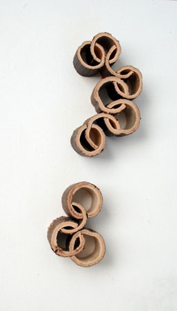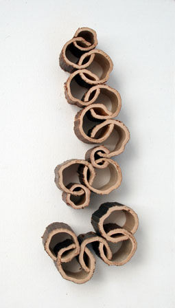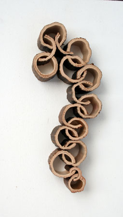 Japanischer Knöterich: Am Anfang dieser Werkgruppe stand meine Faszination am Japanischen Knöterich. Diese Pflanze ist auch bei uns heimisch geworden. Die vitalen Stängel des Neophyten wachsen jedes Jahr neu aus ihren Rhizomen hervor. Getrocknet und in Ringe gesägt ist dies das Material der „Bilder“. Neu zusammengefügt lassen sich aus diesen Elementen ornamentale Formen entwickeln, die, wie ich finde, mit Vielfalt, Schönheit und Konzentration verbunden sind.